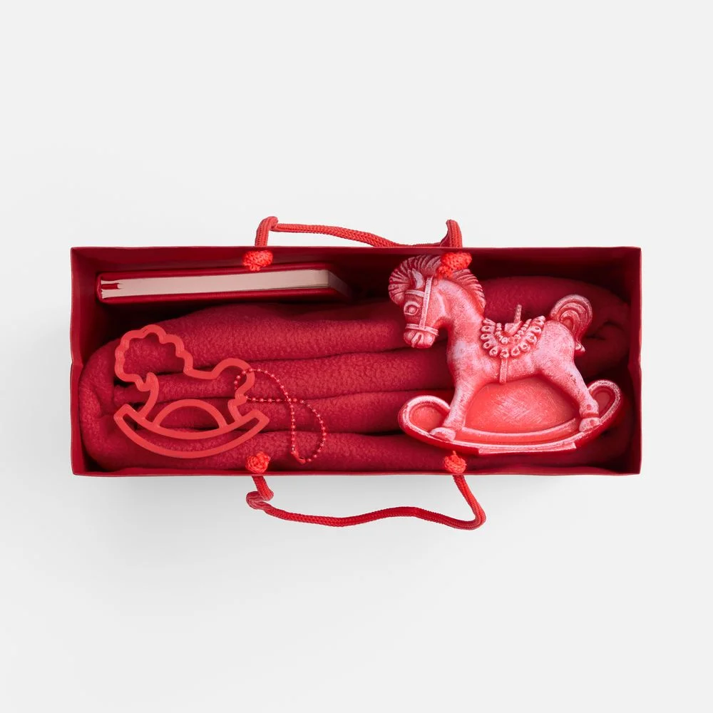 А еще у Creativerse есть своя изюминка: актуальная 3D-подвеска в форме детской лошадки-качалки, которая крепится к подарочному пакету и задает праздничный тон всему набору. Позднее она непременно станет частью повседневного образа, ведь такую милую подвеску можно прикрепить куда угодно — как символ года и просто счастливый талисман.